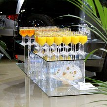 Великолепный аксессуар праздника, что там говорить. Можно сказать, одна из главных его «достопримечательностей». Раскроем секрет: классическая пирамида из шампанского составляется из 55-ти бокалов. Но для умелого профессионала не составит труда выстроить этот атрибут праздника из количества бокалов, равного числу гостей. И об украшении пирамиды мы позаботимся: декор, подсветка, стилизация под конкретное мероприятие – всё это будет продумано и воплощено. А гости – будут восхищены!