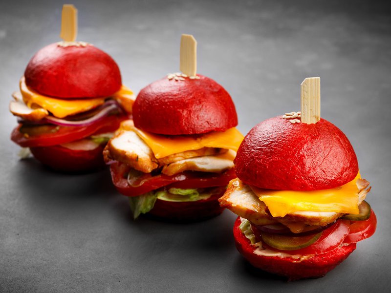 Запеченное филе индейки, айсберг, помидор свежий, огурец маринованный, сыр "Чеддар", луковое варенье, соус фирменный
