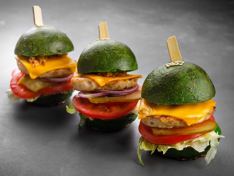 Куриная котлета, айсберг, помидор свежий, огурец маринованный, сыр "Чеддар", луковые хлопья, лук крымский, соус фирменный