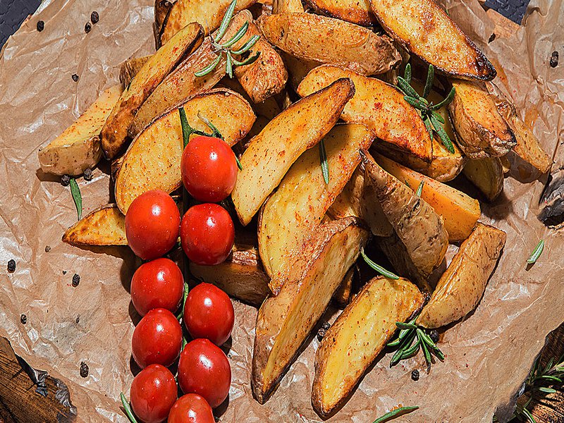 Картофельные дольки, запеченные до корочки с чесночком, розмарином и сладкой паприкой