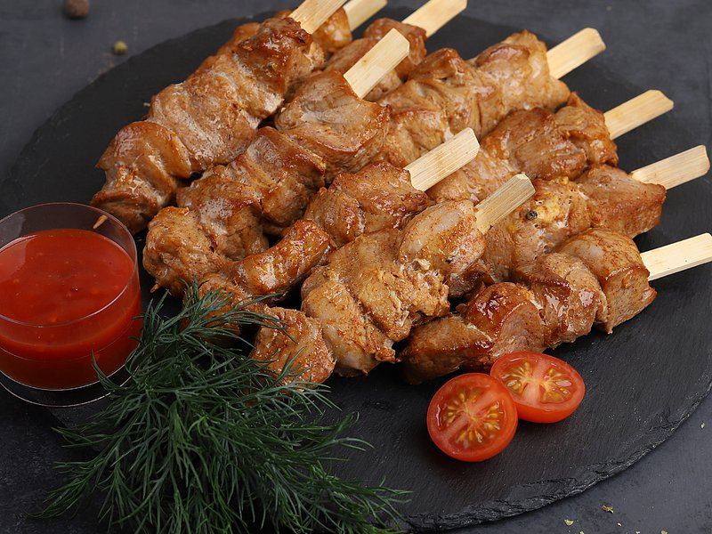 Мини-шашлычок из свинины с томатным соусом (от 10 порций)
