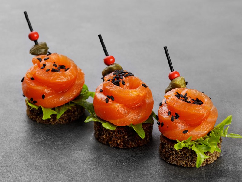 Канапе «Роза» со слабосоленой семгой на бородинском тосте (от 10 штук)