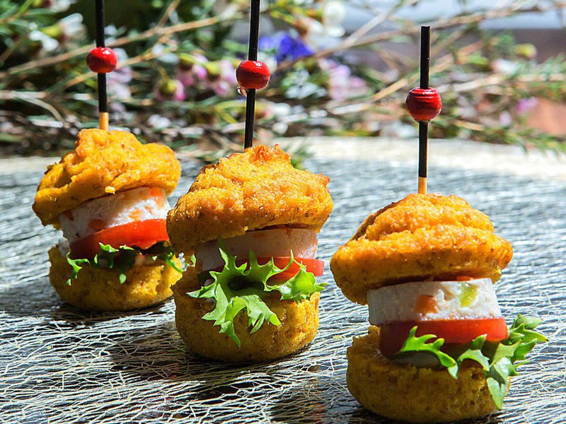 Мини-булочка из поленты с куриным карпаччо и томатами (от 10 штук)