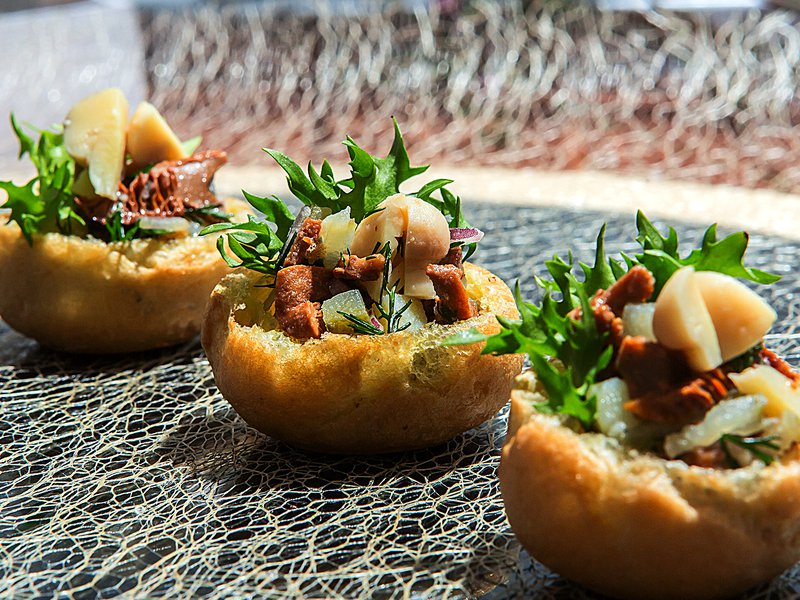 Салат «Лесной» с отварным картофелем и маринованными опятами в профитроле (от 10 штук)