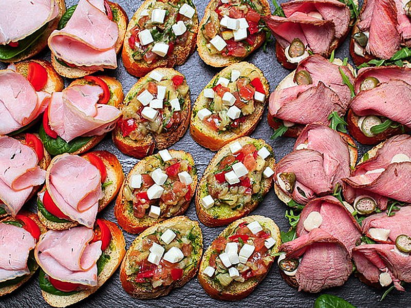 3. Брускетта с сочным ростбифом, рукколой и королевским каперсом.