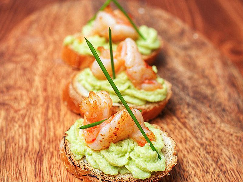 Мини-брускетта с Гуакамоле и креветкой-гриль (от 10 штук)