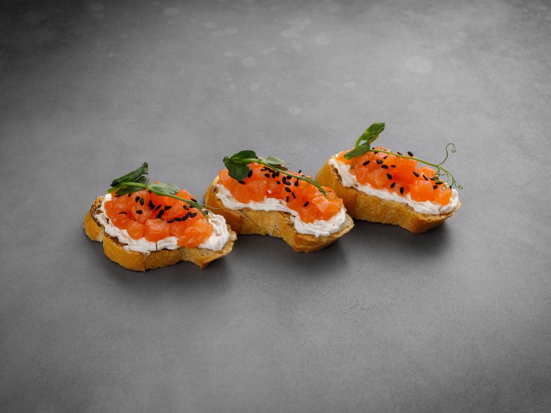 Мини-брускетта с лососем и сливочным сыром (от 10 штук)