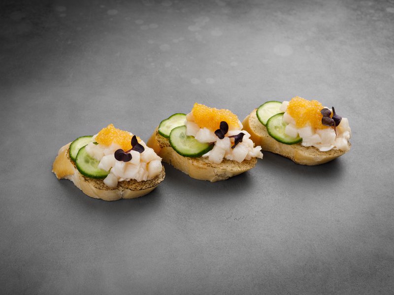 Мини-брускетта с мясляной рыбой и огурцом (от 10 штук)