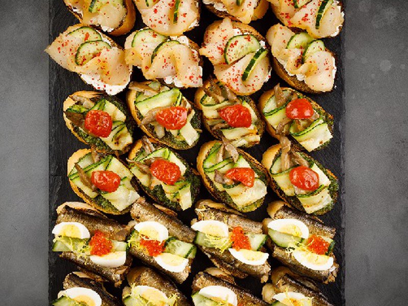 1. Мини-брускетта со шпротами и свежим  огурцом;