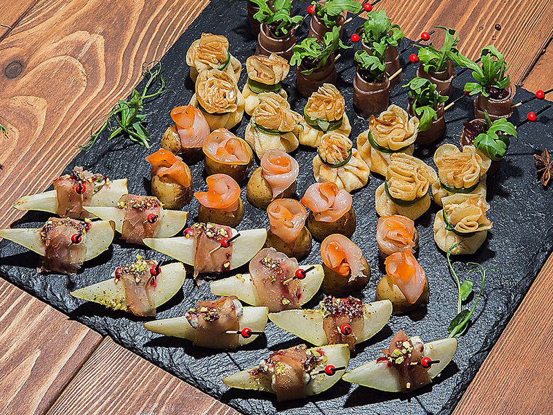 Поднос №14. Ассорти закусок с мясом индейки и утки "Гламур" (40 шт., 4 вида)