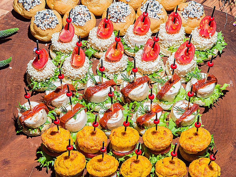 1. Мини-булочка из поленты с куриным карпаччо и томатами