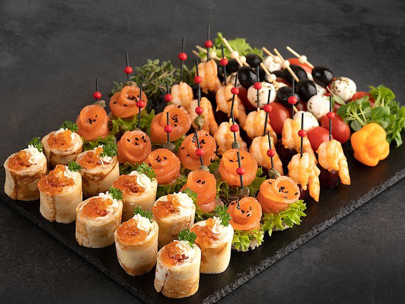 2. Канапе "Роза" со слабосоленой семгой на бородинском тосте