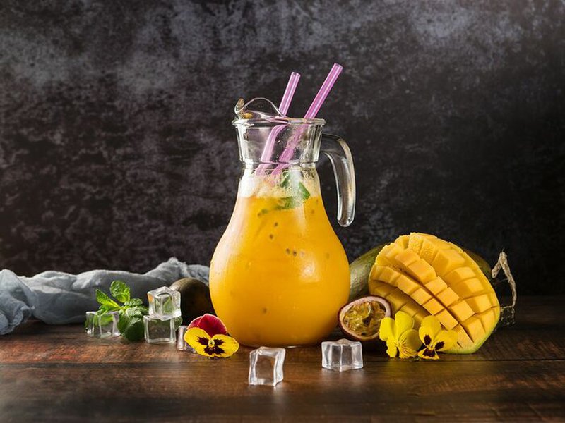 Вкусный, ароматный и полезный домашний лимонад из манго с маракуйя, приготовленный по нашему фирменному рецепту. Без химии и консервантов.