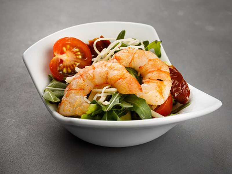 Салат с рукколой, авокадо, креветками и сыром "Пармезан" (от 12 штук)