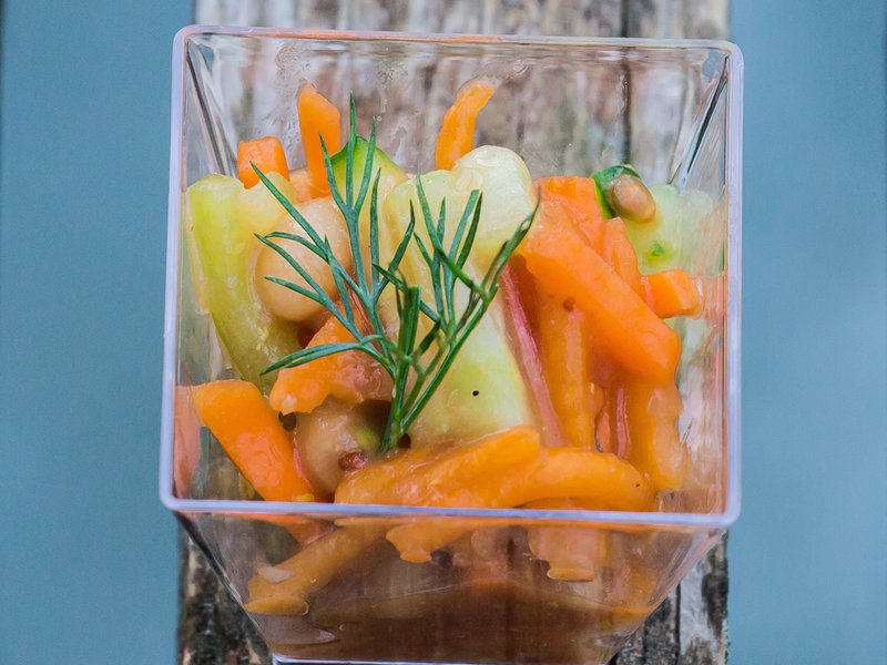 Салат с тыквой, красной фасолью и цукини с оригинальной заправкой, подается в стаканчике