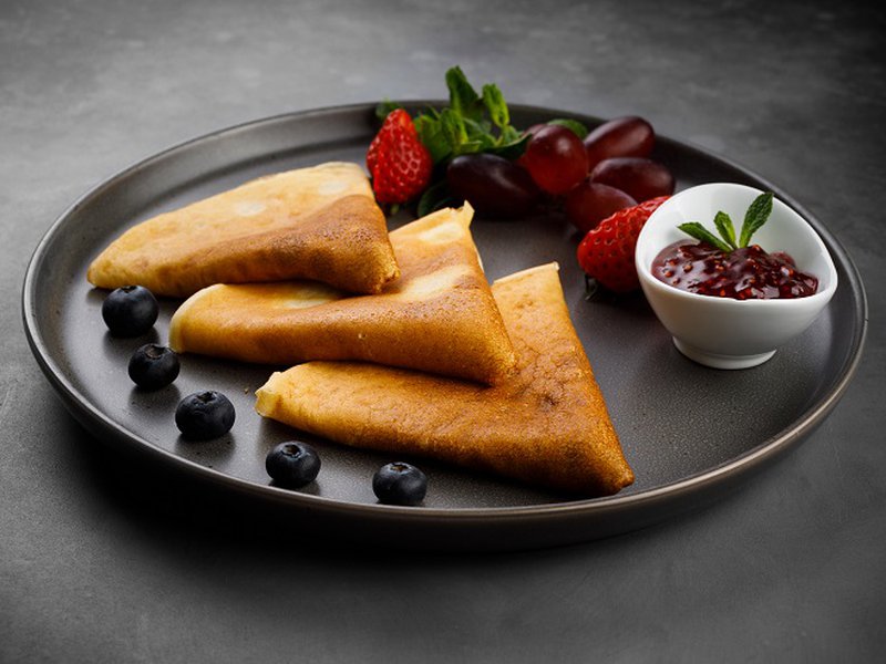 Блинчики домашние ажурные с малиновым соусом (3 шт. на порцию)