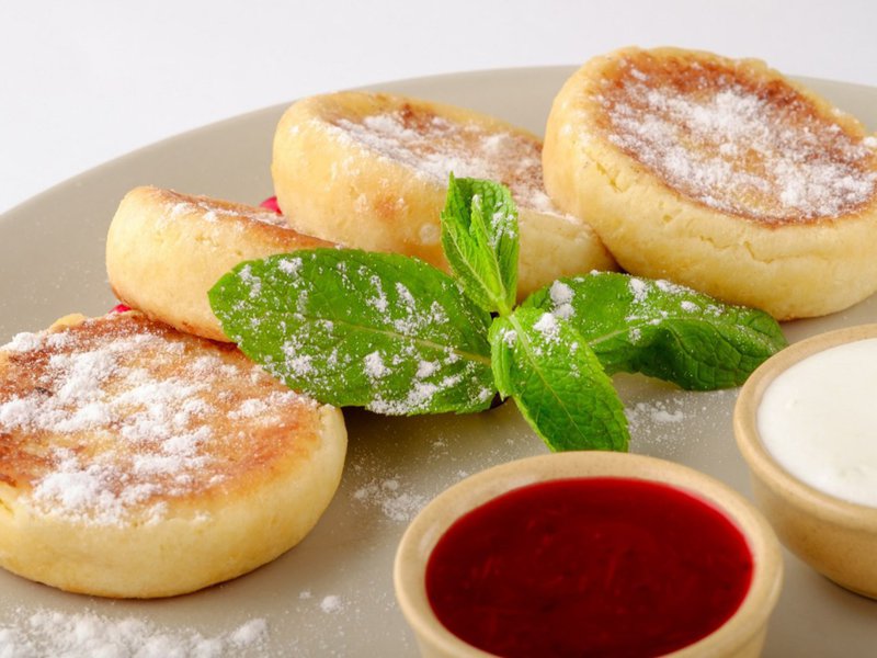 Мини-сырники со сметаной и ягодным соусом (2 шт. на порцию)