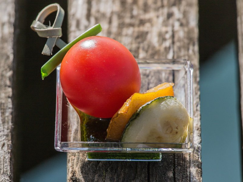Помидорка Черри, цукини и болгарский перец-гриль с соусом Песто