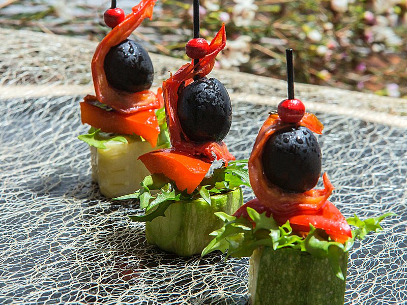 Мини-брошет из цукини с вялеными томатами и маслиной (от 10 штук)