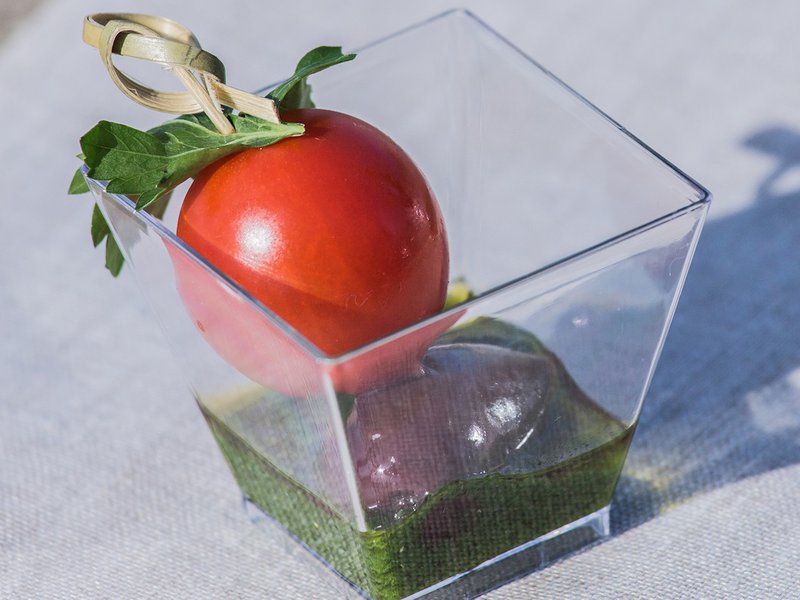 Оливки Каламата с помидором Черри и соусом Песто (от 10 штук)