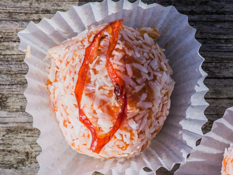 Пикантные морковные шарики с имбирем, чесноком, зеленью и грецким орехом в кокосовой стружке