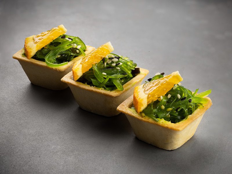 Салат Чука с ореховым соусом и кунжутом в тарталетке